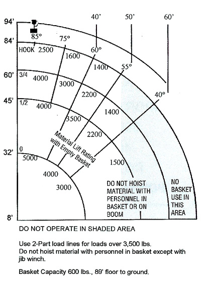 Auxiliary hydraulic jib winch in the basket 400 Lbs. rated