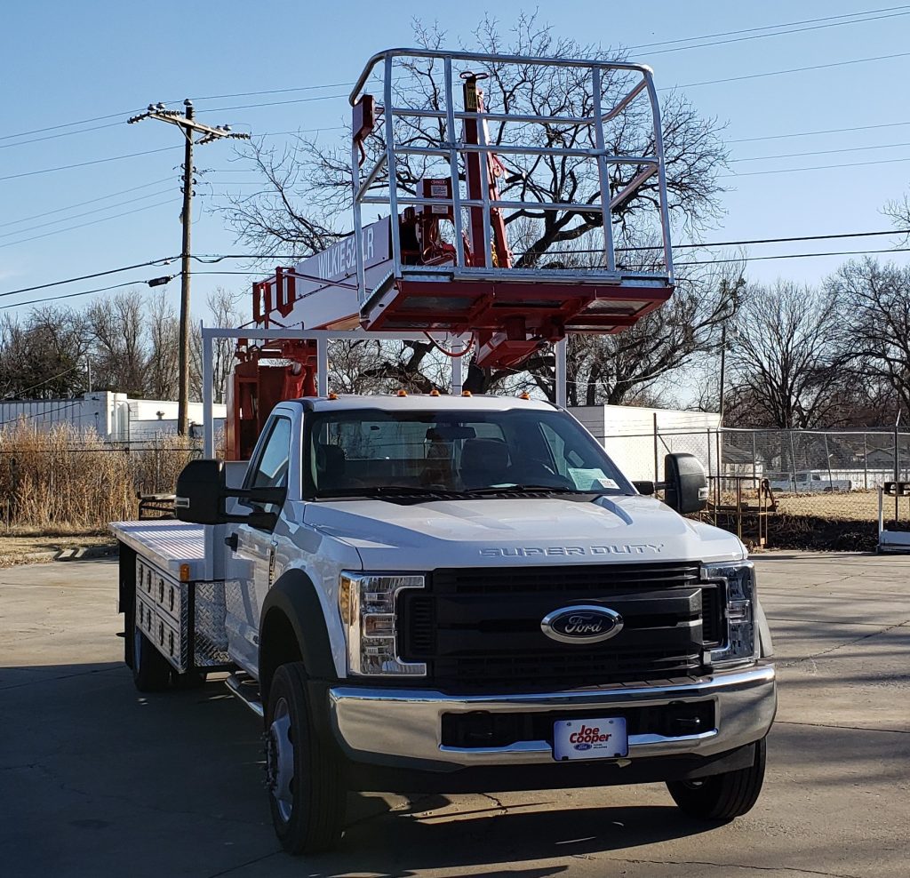 Mounted on a new Ford F-550 19,500 GVW cab chassis, diesel, automatic, cruise control, radio with syn., AC , power windows power locks, power mirrors, 110 volt plug in trailer brake controller.